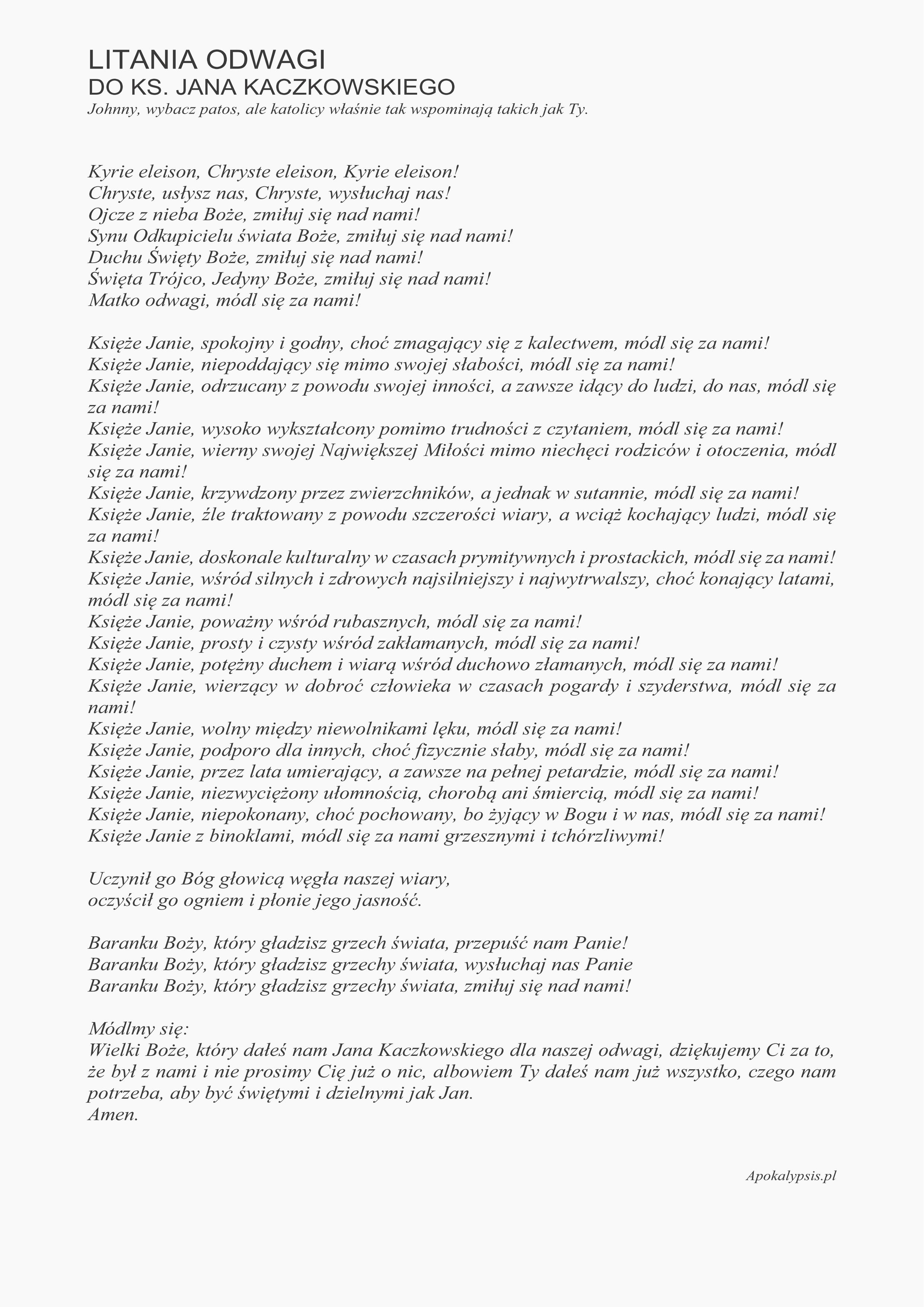 do ks. Jana Kaczkowskiego